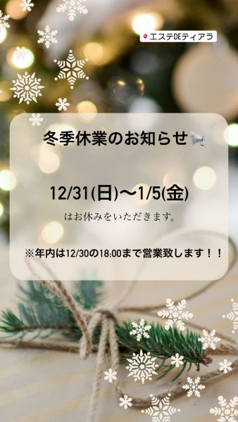 12月31日〜1月5日まで休みをいただきます🙇♀️