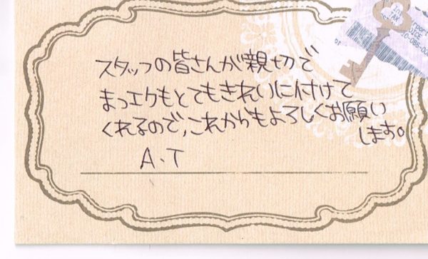 スタッフの皆さんが親切でまつエクもとてもきれいに付けてくれるので、これからもよろしくお願いします。